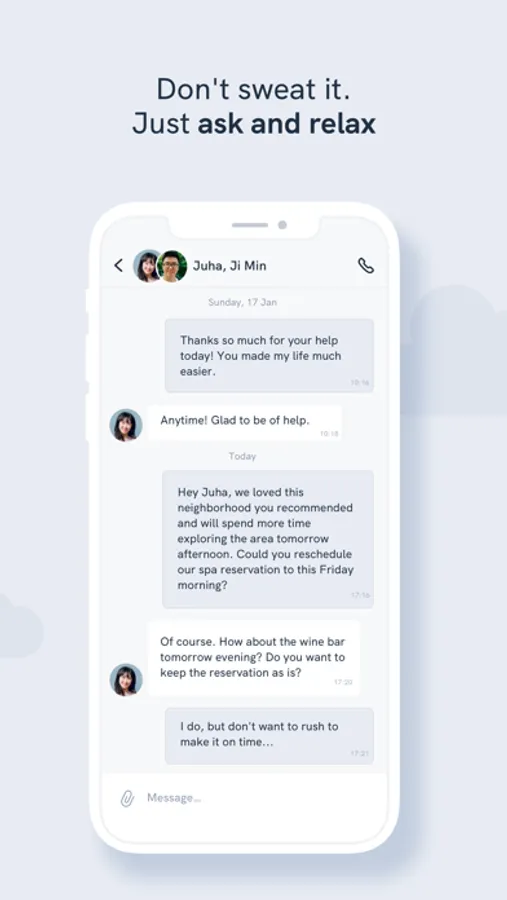 When your mind is busy with to-dos or you don't know how to navigate the unfamiliar destinations, just open Chickadee app and tap on your personal team for customized support. We are here to make your traveling more convenient and carefree. Because you deserve it!