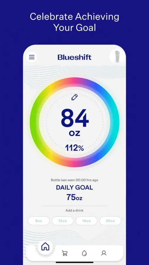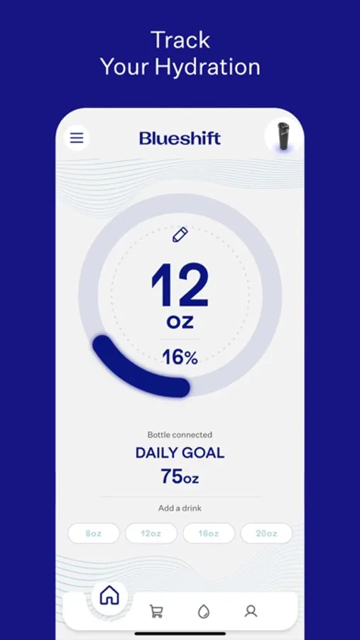 -Create a personalized hydration goal and track your progress using your Blueshift Wellness Bottle, or by adding drinks with a single tap