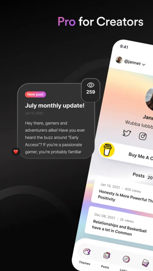 With our latest features - Custom Domain, Emoji Username, and Post, your bio link takes personalization to a new level. Replace your Bio Link URL with a domain of your choice, distinguish yourself with an Emoji-only username, and share updates directly from your bio link page using our new publishing feature. All this, while leveraging tried-and-true features such as analytics, themes, and social media integration.