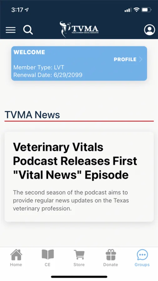 Welcome to the Texas Veterinary Medical Association (TVMA) app. The app is designed to help our members receive up-to-date news, manage their memberships, network and collaborate with colleagues through our committee forums, buy discounted products, make donations and register for continuing education events. Please allow notifications so we can send you timely alerts.