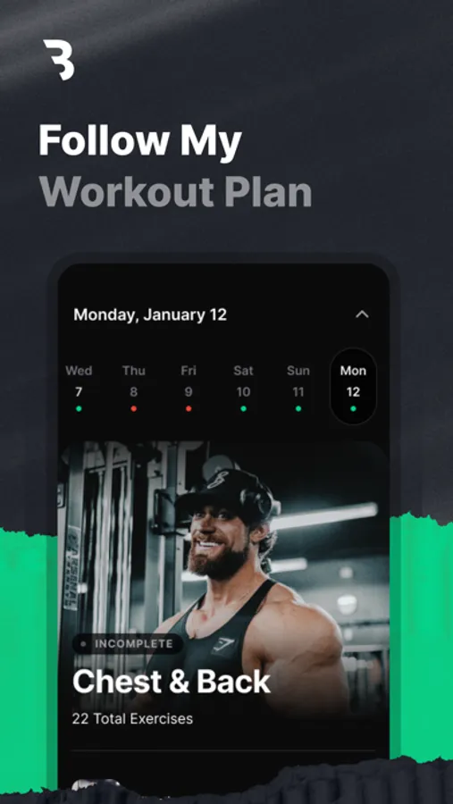 Unlock your full potential with a bodybuilding-focused workout program led by 4x Mr. Olympia Champion, Chris Bumstead. His comprehensive program includes exclusive membership content, weight tracking, detailed exercise information, and a supportive community to help you reach your muscle-building, body toning, and fitness goals.