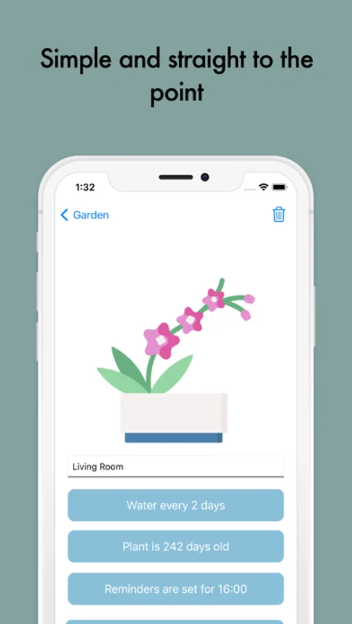 This is the app for you! Simple and straight to the point. Add your plants, set how often you need to water your plant and then choose when the app reminds you!