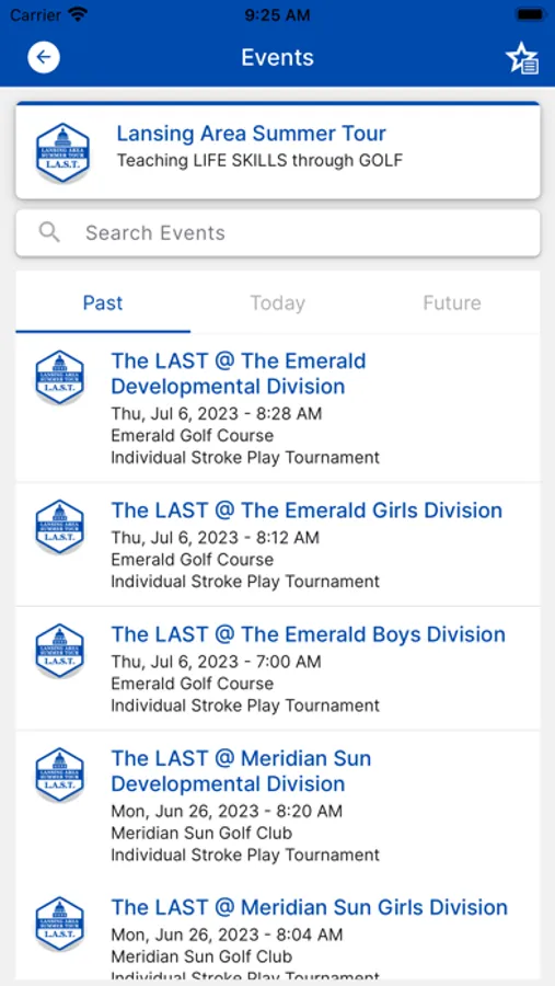 The LAST (Lansing Area Summer Tour) Golf App combines mobile and desktop application technology to allow golfers to view live leaderboards during events and tournaments. On game day, just enter your scores into our easy-to-use scoring interface to let spectators and competitors keep track of your round in real time.