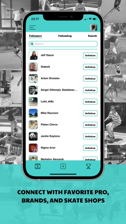 Connect and skate with friends, shops, brands, and Pro skaters worldwide. Post your skate videos and compete, win and earn skateboard stuff.