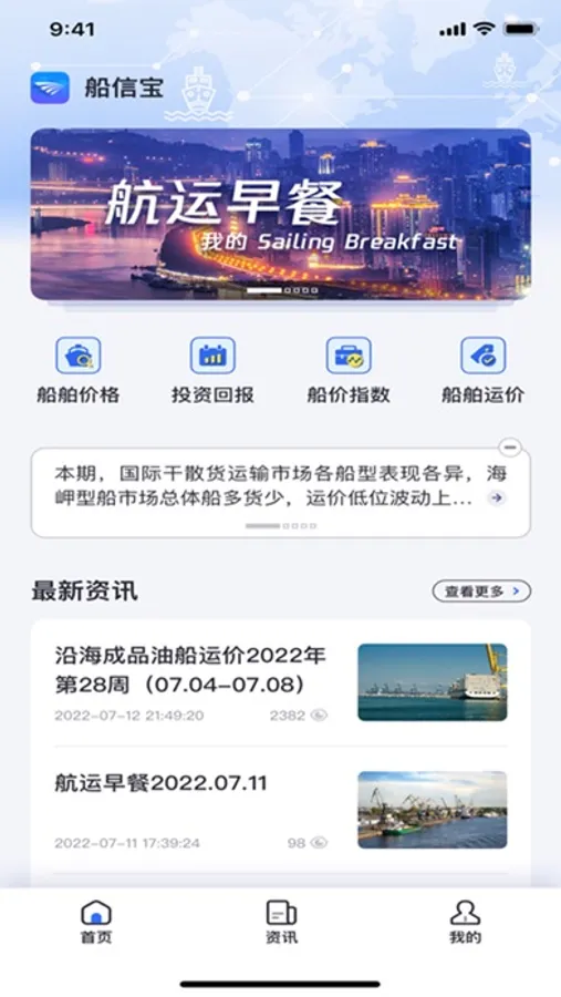 船信宝是由上海勇航信息科技有限公司研发的一款定位于航运行业的信息查询APP。通过其多年沉淀的数据支撑以及使用便捷的移动客户端,船信宝以行业独有的数据,向航运业的从业者提供精确的统计分析数据。2015年至今,船信宝在其平台上提供了船舶价格、船舶价格指数、船舶投资回报率、船舶运价、航运资讯五大类功能。其中船舶价格、船舶价格指数、船舶投资回报率提供了过去6年的分析数据;航运资讯涵盖了航运早餐、航运观点、航运政策、航运指数、船舶运价五大板块的内容。