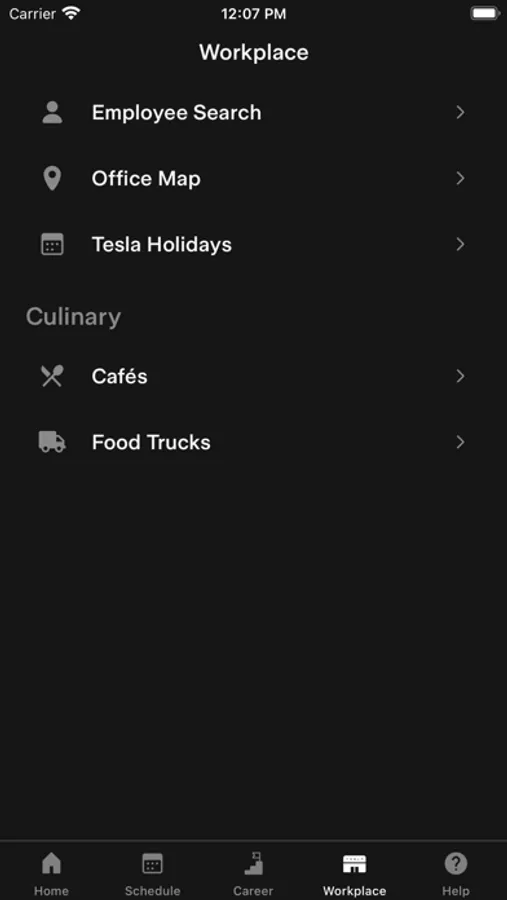 Tesla employees can use Inside Tesla to browse the latest food menus, complete learning, read the latest news, view the employee directory, and access your mobile badge.