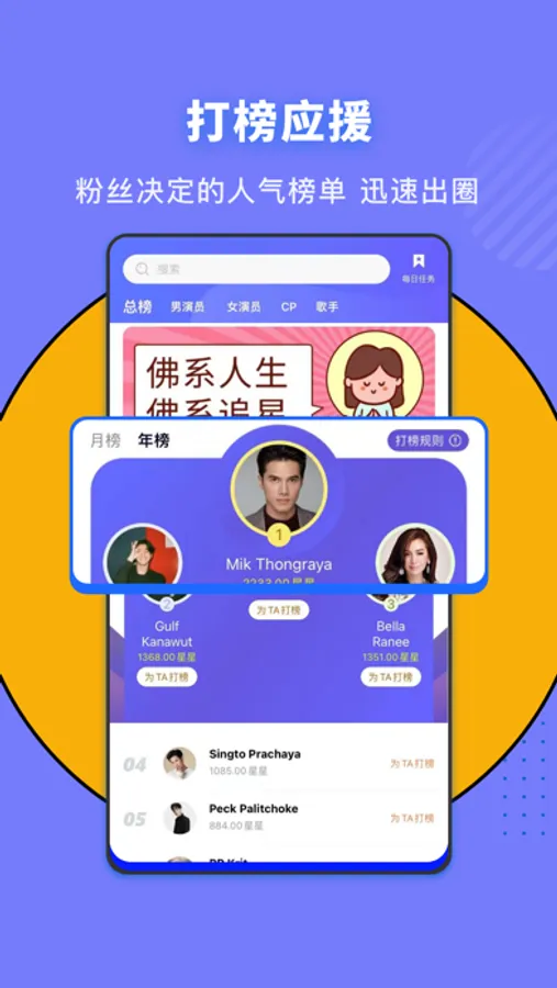 【打榜】每天守护你的偶像,助力让TA获得更多海内外免费曝光。