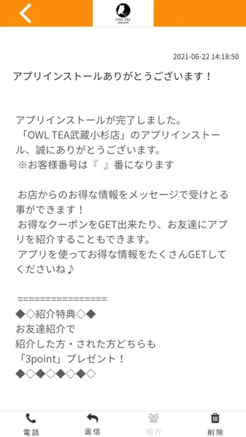 OWLTEAのアプリをSNSを通じてお友達に紹介する事ができます。