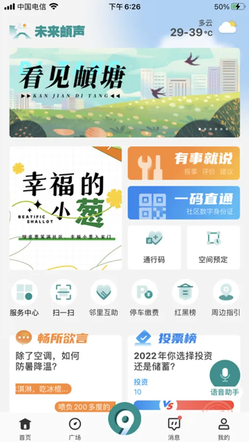 未来頔声APP不仅提供物业报修、社区报事、智能通行、人脸通行等基础服务,同时通过“积木式”扩展集成更多民生应用涵盖九大场景,作为连接未来社区居民和服务者的桥梁,为頔塘居民营造更便捷、更和谐、更具幸福感的未来智慧化生活体验。