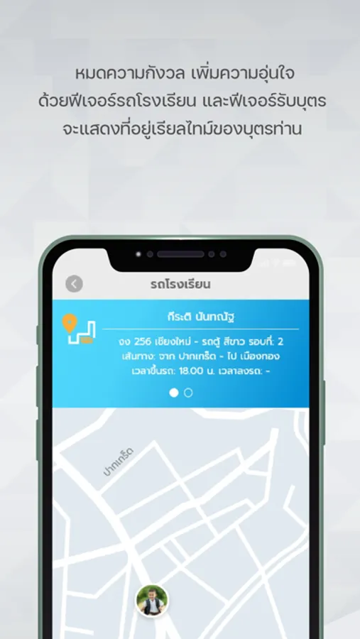- หมดความกังวล เพิ่มความอุ่นใจ ด้วยฟีเจอร์รถโรงเรียน และฟีเจอร์รับบุตร จะแสดงที่อยู่เรียลไทม์ของบุตรท่าน
