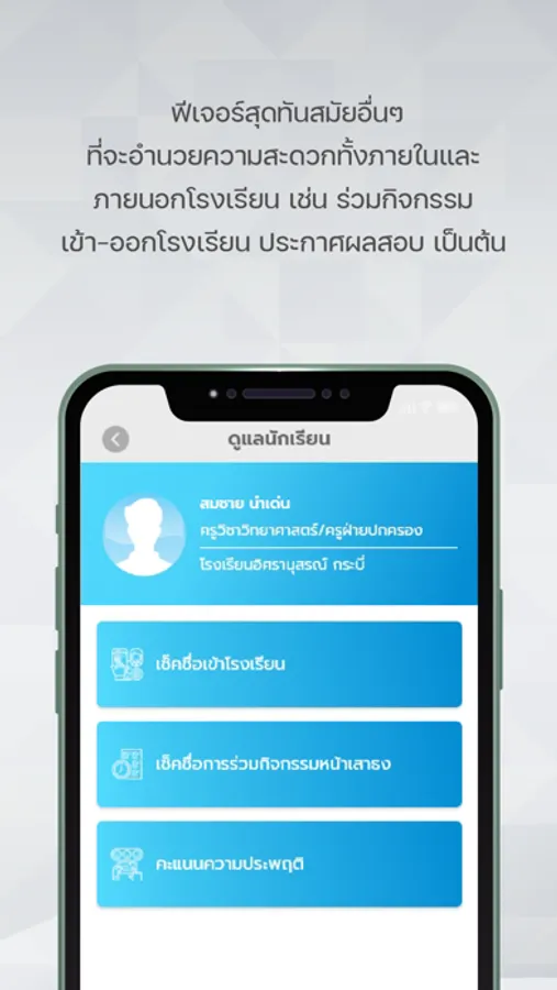 - ฟีเจอร์สุดทันสมัยอื่นๆ ที่จะอำนวยความสะดวก ทั้งภายใน และภายนอกโรงเรียน เช่น ร่วมกิจกรรม เข้า-ออกโรงเรียน ลาเรียน ประกาศผลสอบ เป็นต้น