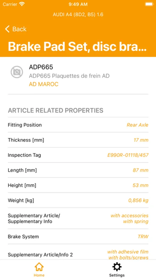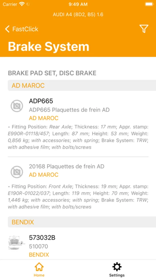 • Identify the right spare part using several search methods: article number, OE number, EAN code, by brand, model, VIN number, engine code, ...