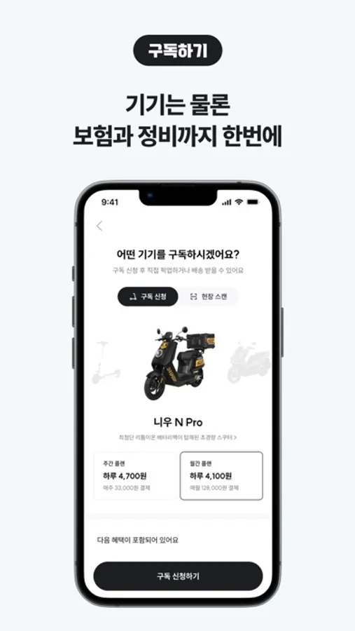 오토바이, 스쿠터, 킥보드, 자전거 등 자신에게 필요한 기기를 다양한 방법으로 만나보세요.