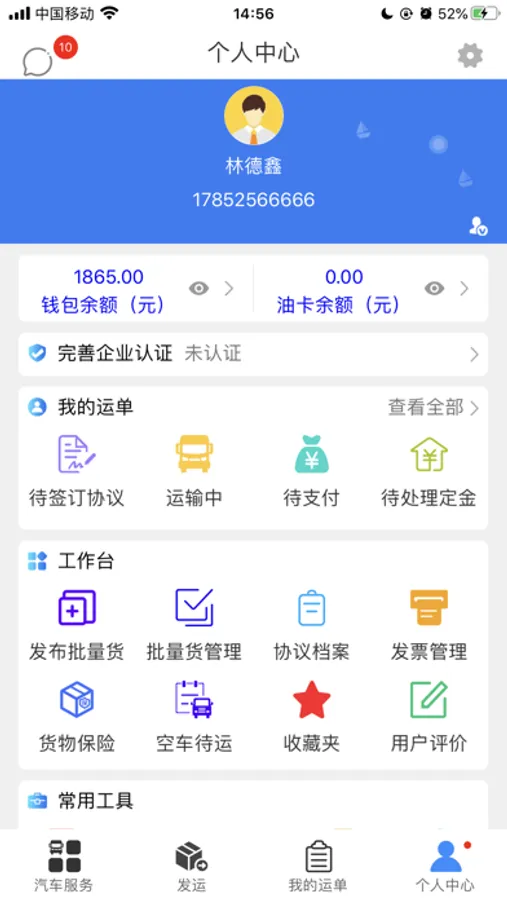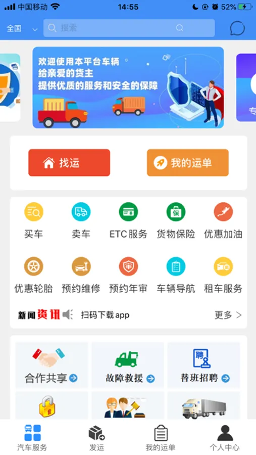 安装汽运app货主版后,货主可以进行发布货源、货源报价和个人信息维护等模块的使用。