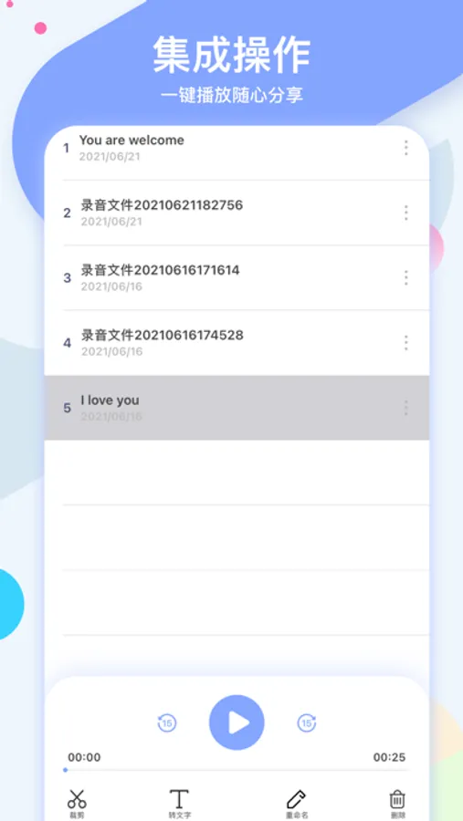 你还在为做会议记录而苦恼吗?你还在为整理采访稿子而忧愁吗?你还在为上课开小差错过重点而后悔?满足你在不同场景下的录音需求~