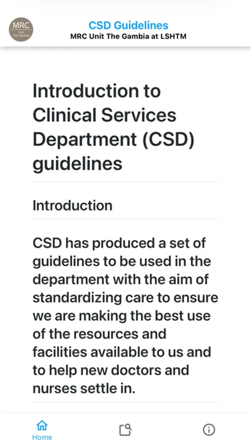 This app is designed to provide quick offline access to the clinical guidelines of the Clinical Services Department of the MRC Unit The Gambia at LSHTM.