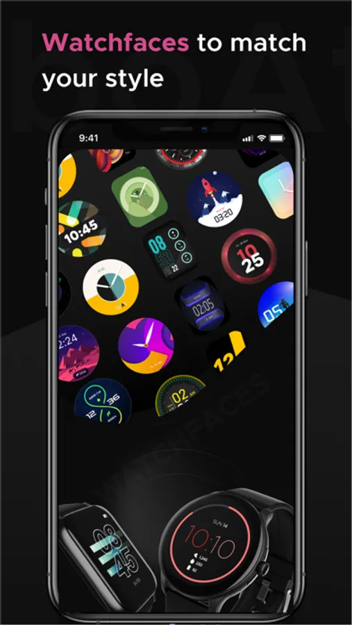 A variety of watchfaces to suit your style. Select and push desired watchfaces from the app.