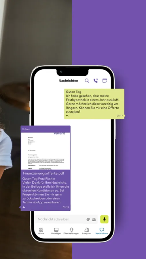 - Bei Fragen einer Beraterin oder Berater schreiben, Dokumente austauschen oder einen direkt einen Termin buchen