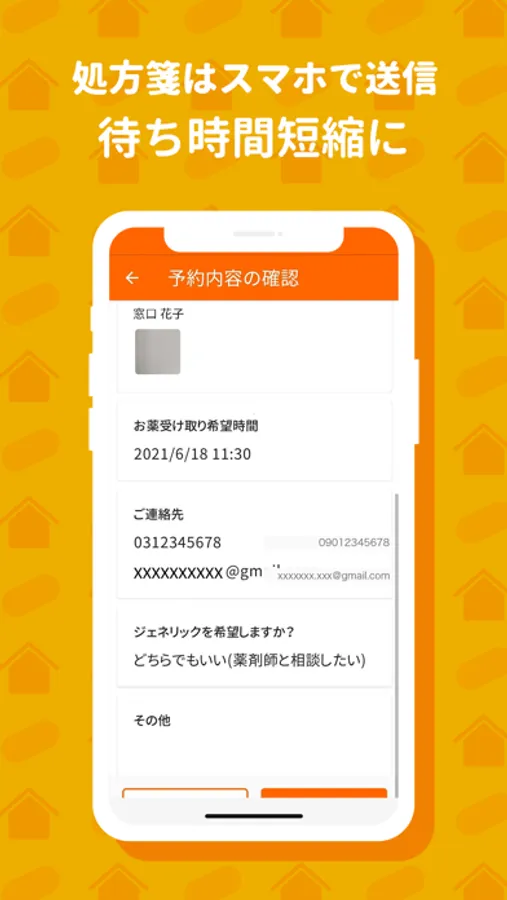 事前に薬局にお薬を作ってもらうための予約機能です。