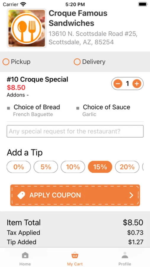 2. Croque Famous Sandwiches is going digital now and has it's own online ordering app. If you want to order delicious food from us, just download our app and place order in 3 quick steps. Build your order just the way you like it or choose one of our combo from the menu. Add items from the rest of our robust menu. And with the order Tracker ® you can follow your order from the moment you place it until it’s out for delivery, carryout or pickup.