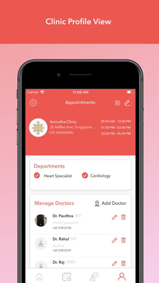 This application is mainly a receiver side which is for Clinic. Clinic able to create and manage a profile for clinic and doctor,