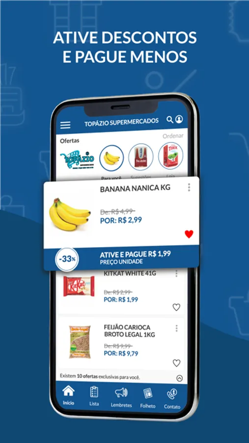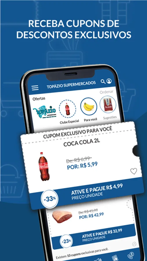 Viu quantas vantagens? Comece a aproveitar tudo isso, fazendo o download gratuito do aplicativo Topázio Supermercados.