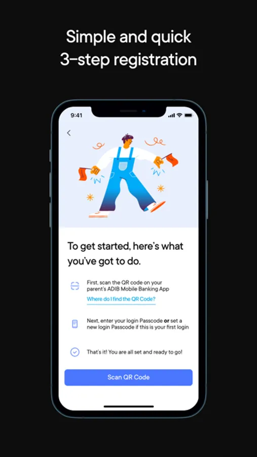 • You can start using amwali app, only after your parent opens an account for you from ADIB Mobile Banking App.