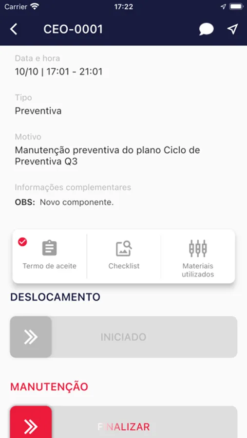Aplicativo para técnicos de campo e uso conjunto com o WFM do EyON Telecom.