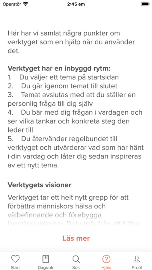 Verktyget bygger på att hälsa handlar mer om att bli hel och harmonisk som människa än om att räkna steg och kalorier. Det syftar till att stimulera tankar och ge aha-upplevelser som hjälper dig hantera livets upp- och nergångar.