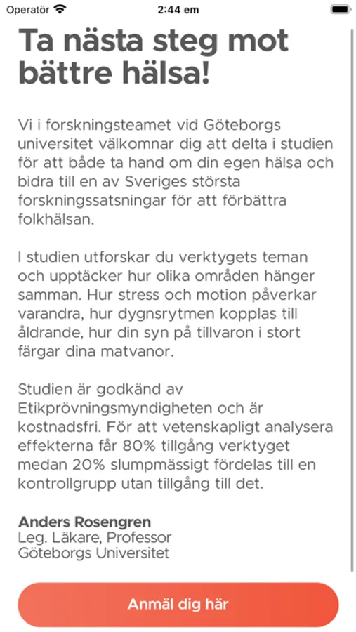 Vi expanderar nu studien om verktyget och välkomnar dig att delta i en av Sveriges största satsningar för att befrämja folkhälsan. Du får tillgång till verktyget under tre år och vi analyserar i vilken grad verktyget förbättrar din hälsa, ditt välmående och förebygger sjukdom. Studien är kostnadsfri.