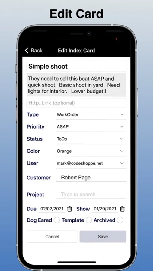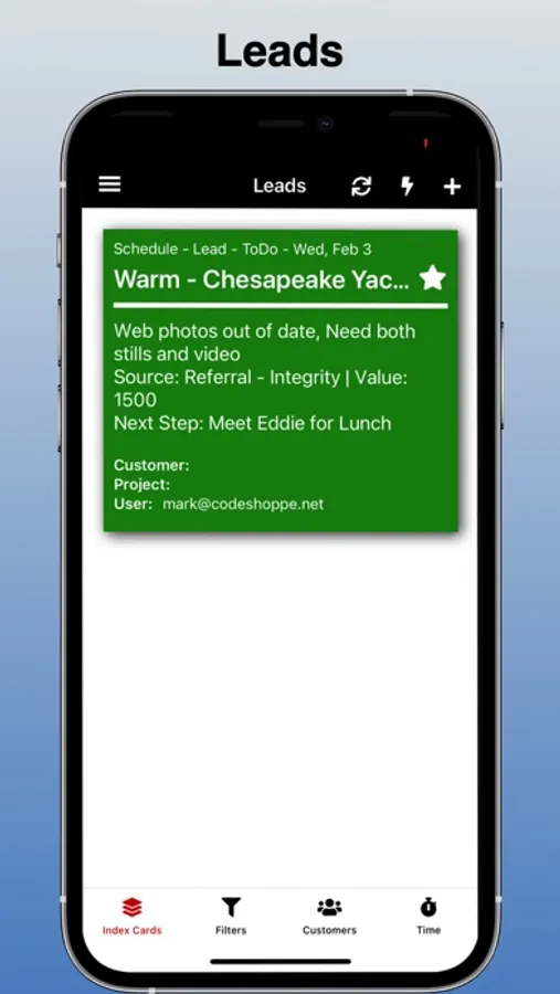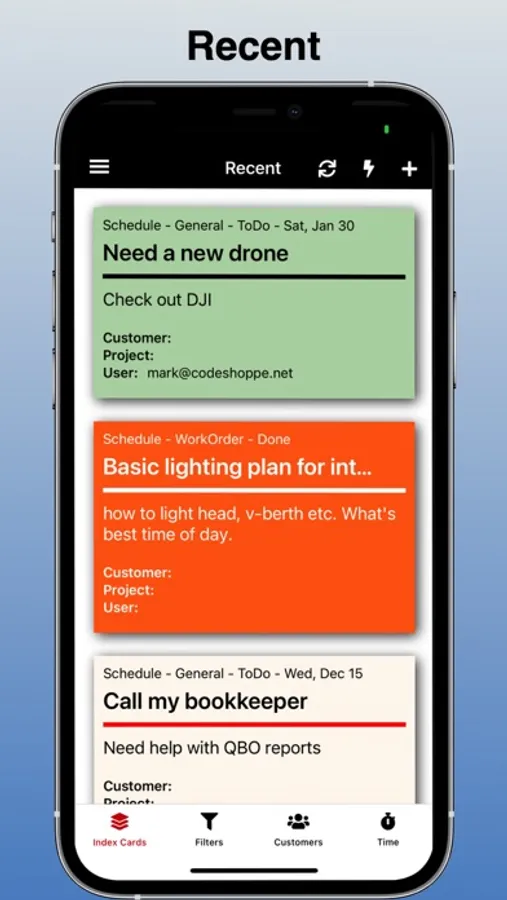 A companion app to JustIndexCards.com: A CRM designed with QuickBooks in mind. Organize your business with Virtual Index Cards. Customer, project, and time management for the rest of us. Just like Goldilocks and the 3 bears, the features aren't too complicated and aren't too fluffy. They're just right.