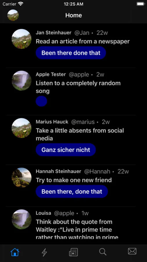 You get new task assigned by opening the app. This challenges are picked from a wide variety of fields.