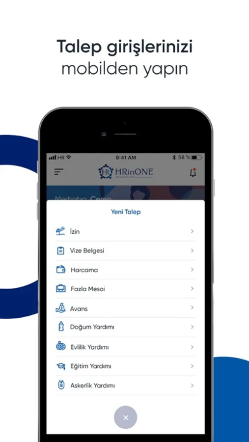 HRinONE mobil uygulamasına kendi kullanıcıları üzerinden giriş yapan çalışanlar;