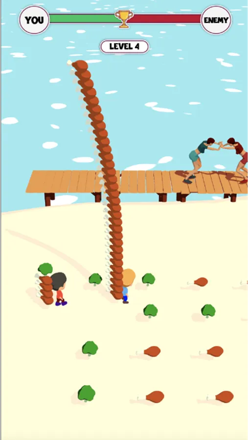Until your wrestler pushes the enemy’s wrestler to the sea.