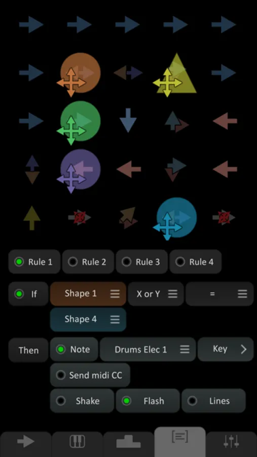Use delay and reverb to add flavor, use the advanced preset and generator systems to save and modify the grid, use the rules system to determine what should happen when two shapes meet, and much more.