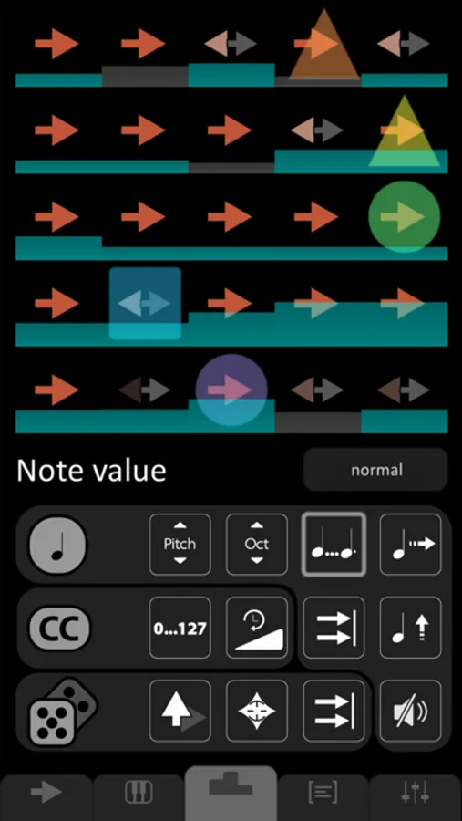 • 5x5 Arrow Cells with data such as: velocity, note duration, note value, repeat chance, crossroad chance, CC out, and much more…