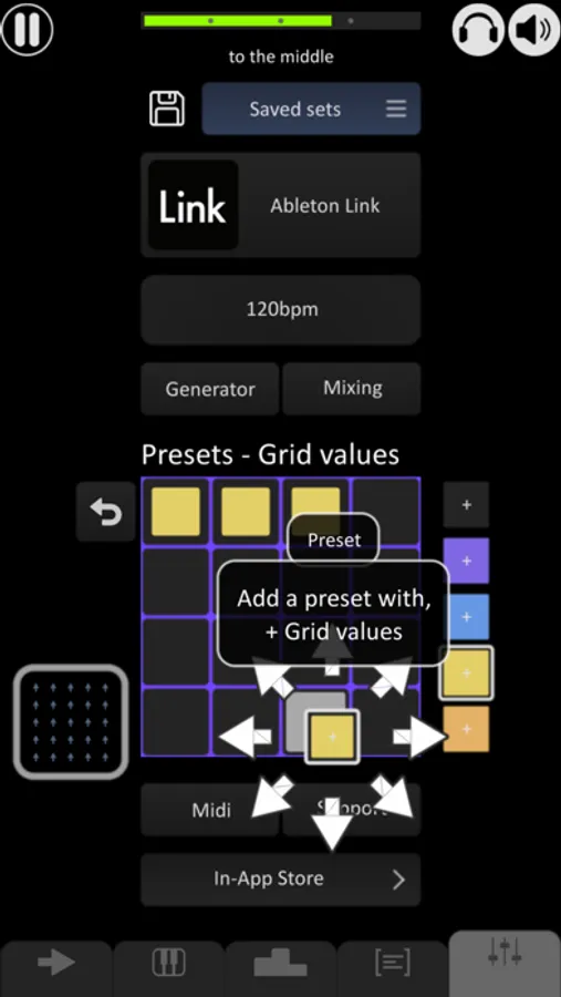 New Path is also able to communicate with other hard- & software. With the MIDI out feature, New Path can control for example your hardware synthesizers. Use the Ableton Link feature to sync Link-enabled devices and play together with your friends. And finally, the Audiobus integration lets you send both audio and MIDI to other apps on your device (You will need the Audiobus app).