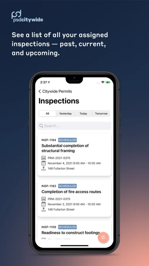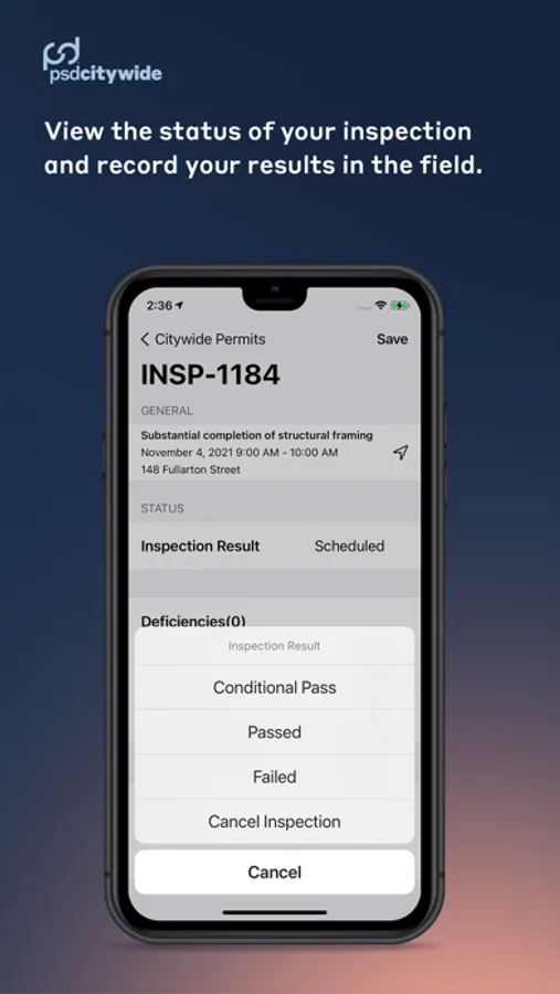 PSD Citywide Permits Mobile is the city inspector’s best friend. Skip the paper and clipboard, Permits Mobile allows inspectors to organize and complete inspection tasks right from a mobile device with no internet required in the field.