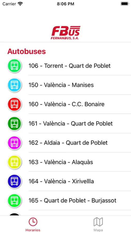 La aplicación de Fernanbus ofrece al usuario toda la información de la red de transporte gestionada por Fernanbus en el Área Metropolitana de Valencia, la interfaz muestra al usuario la información de forma esquemática todas las líneas de transporte, pulsando sobre las líneas permite desplegar los recorridos y al seleccionar una parada le mostrará al usuario los tiempos de espera sobre la parada. El usuario puede seleccionar las líneas que realizan parada en ese punto y el sistema le mostrará información escogida clasificándolo por el color de la línea.