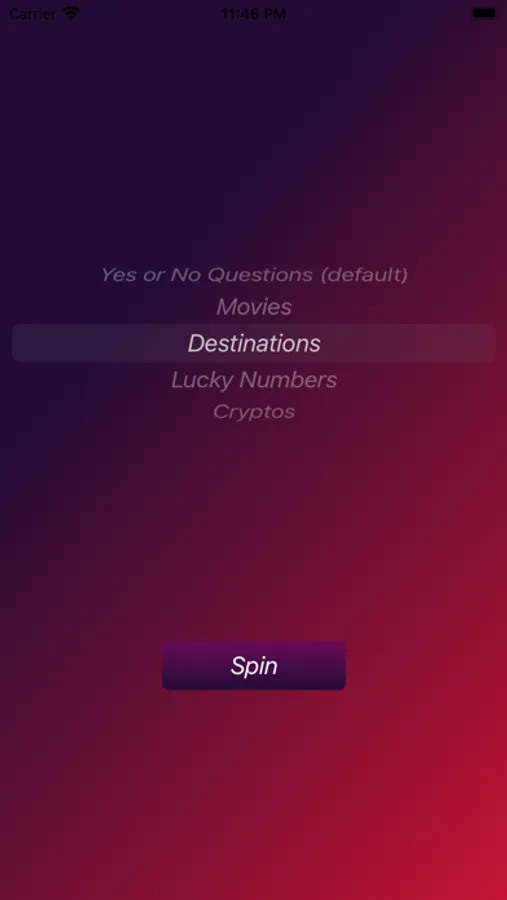 For example, if you are wondering where to go on a vacation, just create a "Destinations" category and add your desired countries as answers in it. Or if you can't decide where to eat, create a "restaurants" category, add your favorite restaurants and spin the wheel until your lucky answer remains.