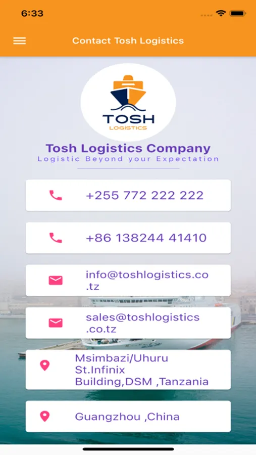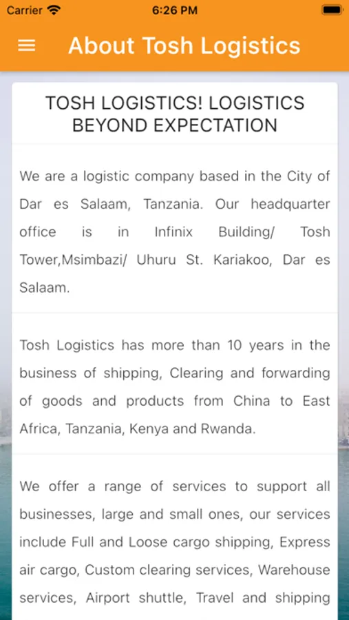 The app allow Customers from Tosh Logistics Company to track their cargo by just providing the cargo book number and phone number customers will be able to view their details.