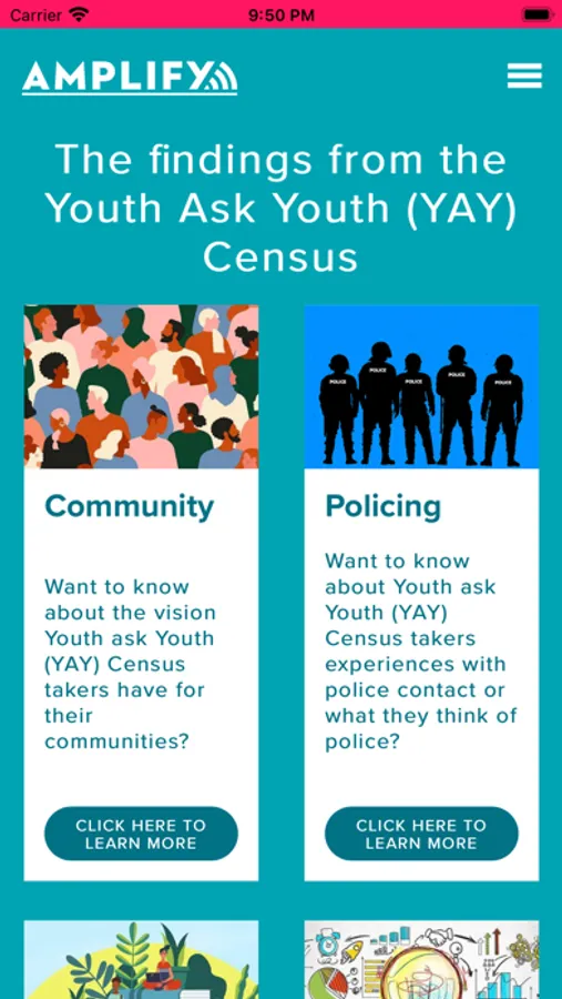 The Intergenerational Change Initiative then worked with MOD-lab to develop our first version of Amplify. Our team of youth and adults weighed in on the all the design decisions and text for Amplify. Our amazing partners at Syllable worked in partnership with ICI members to create the terms and conditions, do user testing around the city and to revamp the Amplify design to get it where it is today.