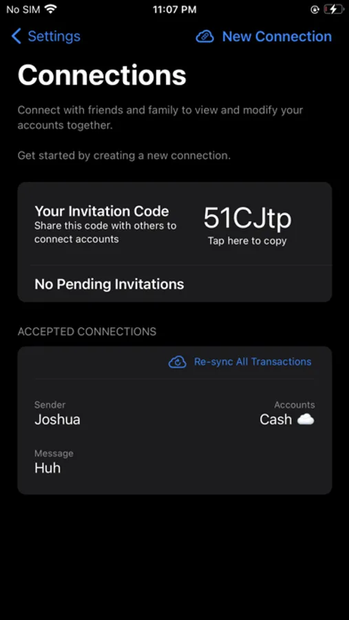 Connect your account with a friend or family member to view and update transactions on a shared account together.