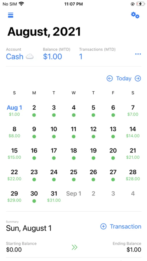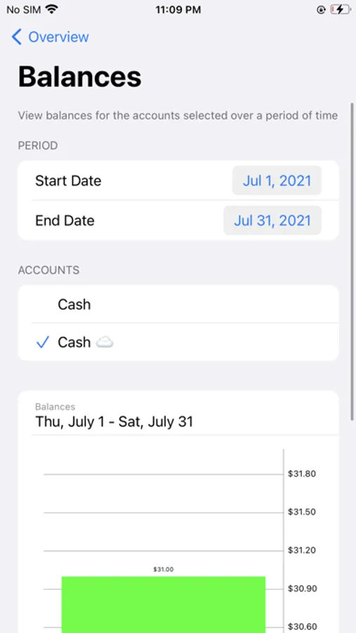 Easily track the flow of cash between accounts. See what each account's balances will be on certain days of the month.