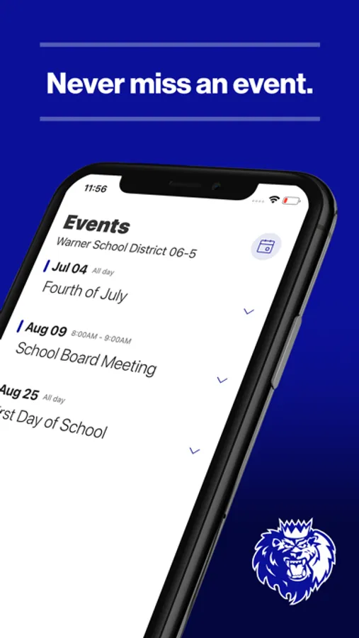 The event section shows a list of events throughout the district. Users can add an event to your calendar to share the event with friends and family with one tap.