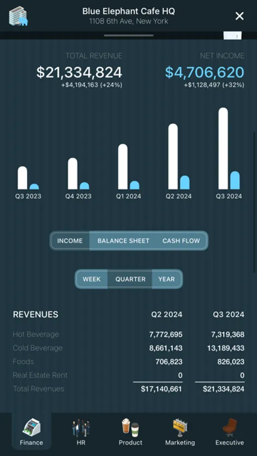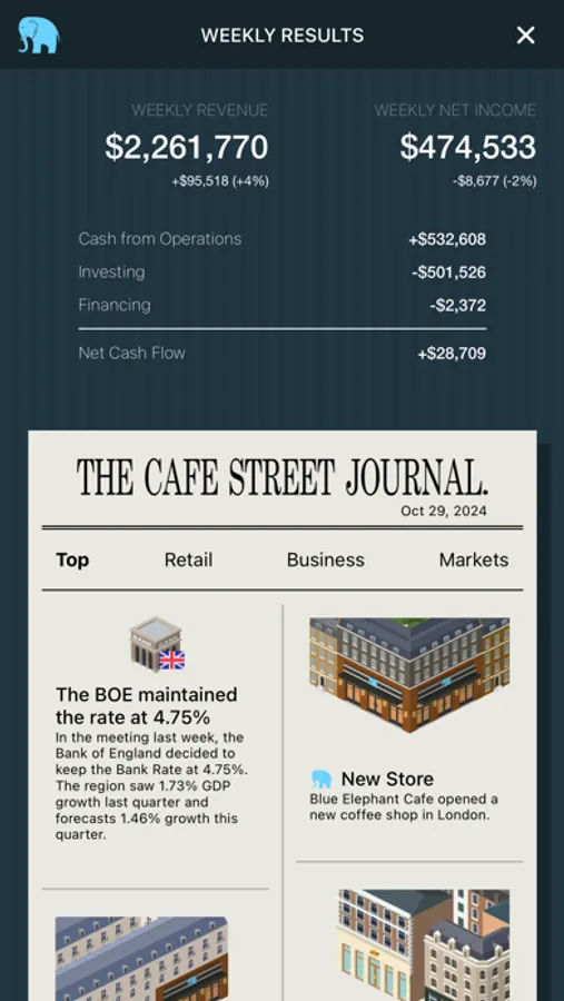 - Through the Investment division, expand your empire into non-coffee businesses such as real estate and stock investment.