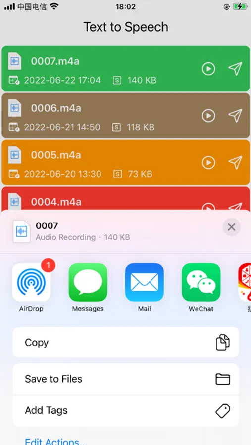 This text to speech convertor app is precisely such a speech synthesizer. It can convert your text into speech audio file, with various voices, and with different voice speed and tones. Generated audio files can be exported or shared super easily with just a few finger taps in the app.