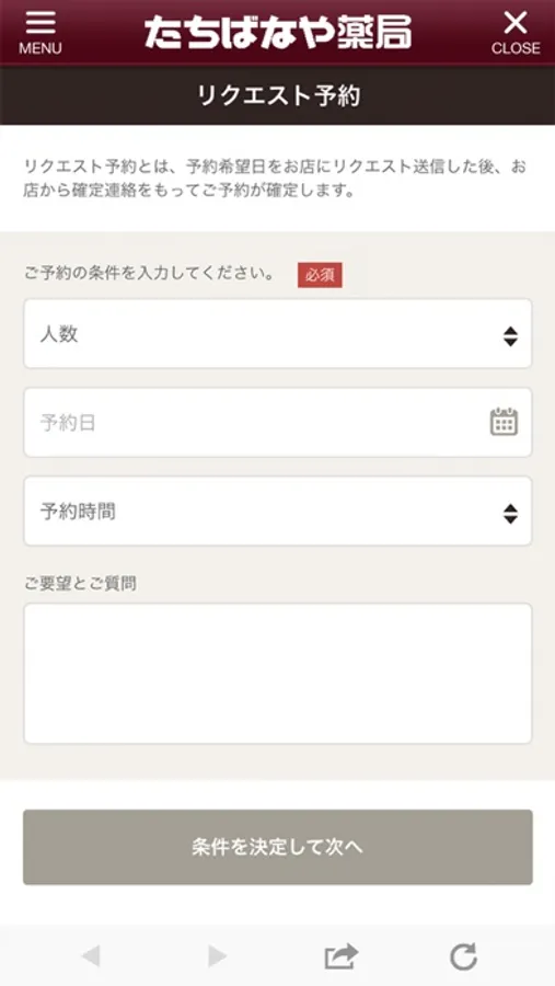 希望のメニュー・日時を指定して送信するだけで予約を依頼できます。