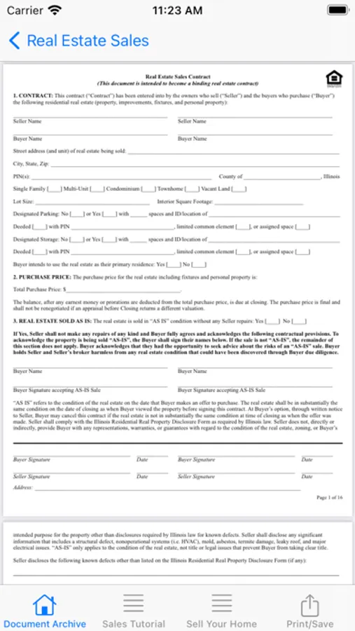 Disclaimer: This app is only intended for real estate located in Illinois. The intended audience are users who want to sell their residential property without a broker and are willing to research and learn about the process on their own using this app as a guide to get started. The sales contract was written for broad coverage, but may require customization for full satisfaction of the user's personal preferences.