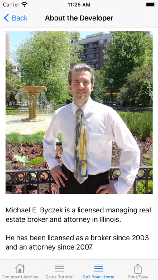 The developer, Michael E. Byczek, is both a licensed Illinois managing real estate broker and attorney. With a background in computer engineering, he was one of the first attorneys in the United States to develop legal apps for iOS and macOS beginning in 2008 focusing on PDF legal documents and analysis of intellectual property law.
